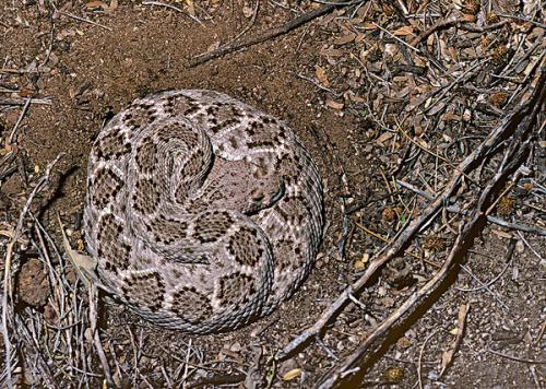 所以东部菱斑响尾蛇在野外不容易被发现的原因,也正是归功于它们背纹。