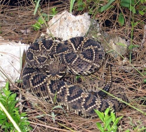 不过呢,要论述响尾蛇中最特别的,震慑力最强,杀伤力最大,那必定是非东部菱斑响尾蛇(Crotalus adamanteus)莫属了。这可是世界上吨位最重,杀伤力最强的响尾蛇。