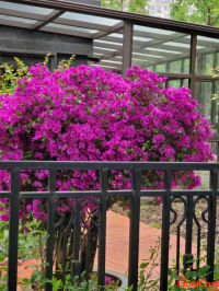 盆栽三角梅,只要光、温、水、肥满足,一年四季都可开花。每天日照10至12小时,光照强、通风条件好,花期可达到180至200天。其中紫色三角梅可开到春节,清明出室后,五一节又可鲜花怒放。