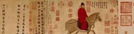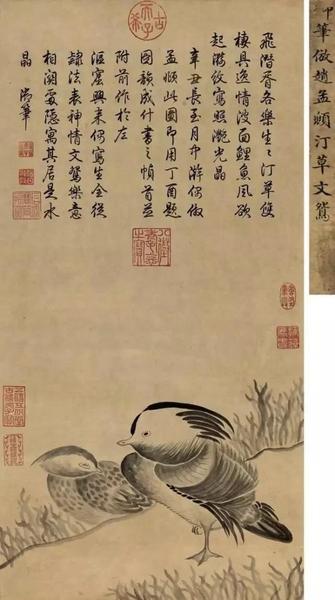 但是值得注意的是,一方标着天子的印章,会不会出现在下方?往往不可能出现这种现象。我们只要是看类似《石渠宝笈》著录中的作品,我们可以观察这个印的位置,比如:下图赵孟頫这张画作,此方印就在顶部。