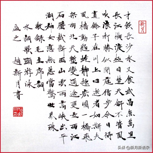 赵新月书法《水调歌头·游泳》。毛主席写武汉:龟蛇锁大江 VS 龟蛇静!——赵新月新解毛主席诗词