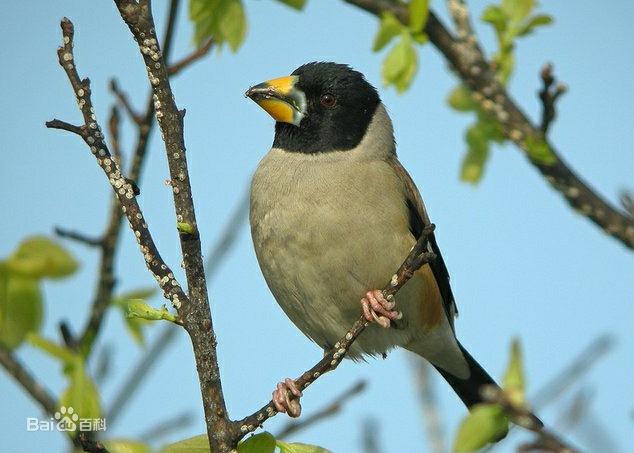 黑尾蜡嘴雀是一种中型鸟类,体长17-21厘米,该物种雄雌异形异色。嘴粗大、黄色,腹和尾下覆羽白色,头部黑色或灰褐色。黑尾蜡嘴雀是中国传统笼养鸟种。无论雄雌的形象都憨态可鞠非常惹人喜爱。