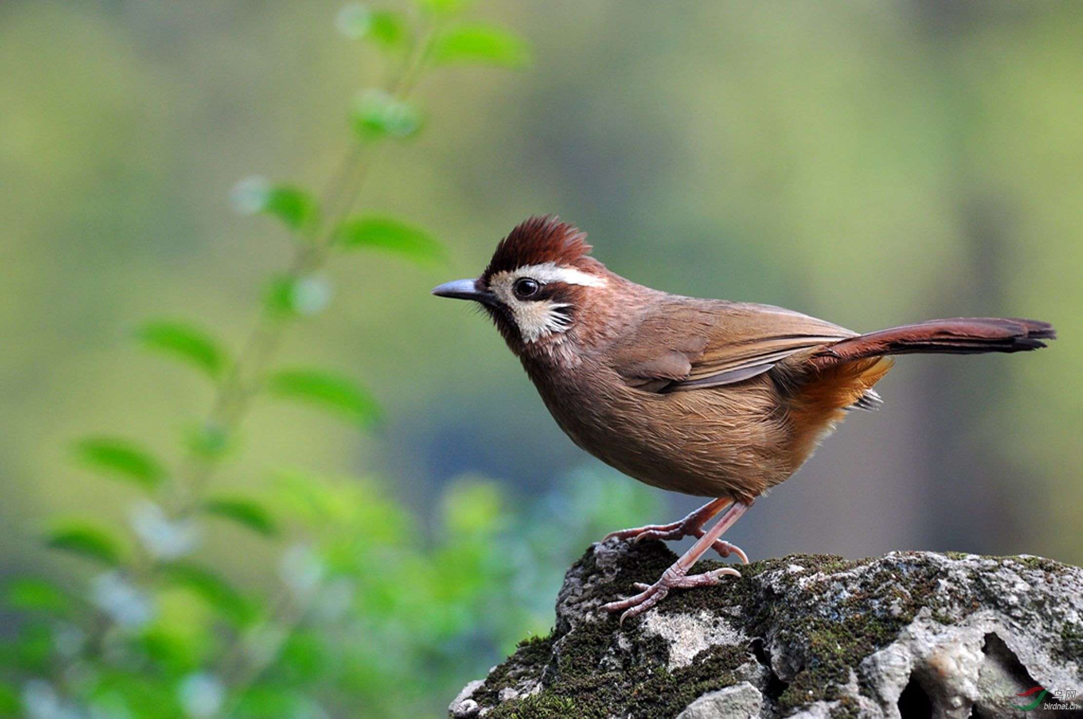 白颊噪鹛是一种中型鸟类,体长21-25cm。它的背、肩、腰和尾上覆羽等其余上体包括两翅表面为棕褐色,其眉纹白色细长,往后延伸至颈侧,是最明显的一个识别特征。它最喜欢在花园的石楠树周围活动,吃一些果实和昆虫。白颊噪鹛善鸣叫,叫声响亮而急促,每天的清晨和傍晚,我们能听到它们‘吉呀,吉呀’的叫声。