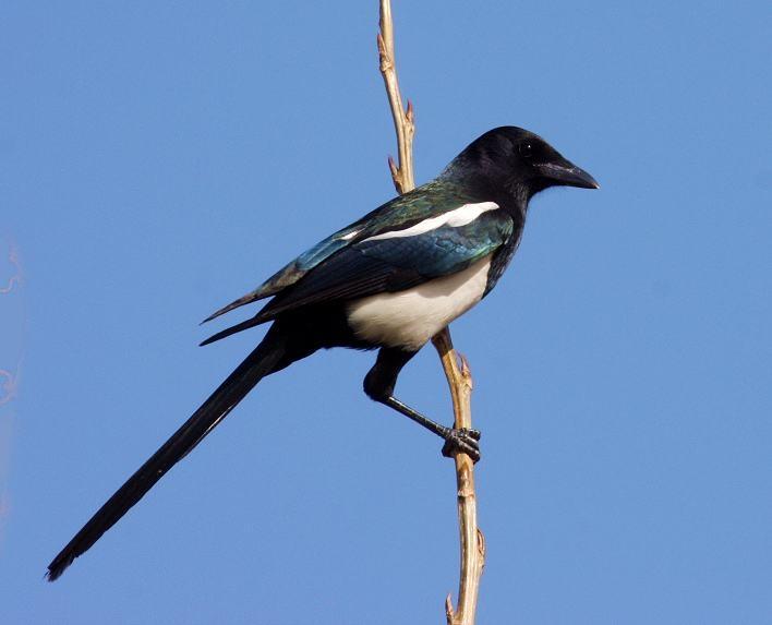 喜鹊也是我们常见的一种中型鸟,体型比灰喜鹊还要大一些,能达到40-50厘米,它的头、颈、背至尾均为黑色,腹面以胸为界,前黑后白,这也是和灰喜鹊最明显的区别。喜鹊在我们学校的种群数量比灰喜鹊要少得多,它们最喜欢在校门口的梧桐树上活动,偶尔也会在校园里活动。喜鹊也是一种杂食性鸟类,各种昆虫和小动物是他们的最爱,偶尔还会吃其它鸟类的雏鸟和鸟蛋。喜鹊在中国是吉祥的象征,自古有画鹊兆喜的风俗。