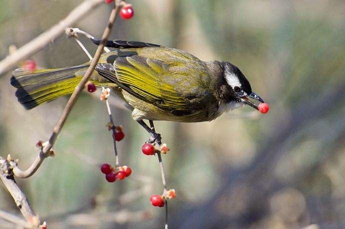 领雀嘴鹎是我们学校种群数量第二多的鸟了,数量仅次于麻雀。它的额和头顶前部黑色,上体暗橄榄绿色,下体橄榄黄色,尾端为黑褐色。领雀嘴鹎是中国特有鸟类,是山区常见鸟类之一。由于该鸟羽色艳丽,可供笼养观赏。它最喜欢的食物是植物的果实,我们会经常看到它们在校园的石楠树上啄食枝头的果实。