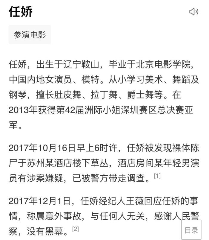 12月1日此案有了最新进展,任娇经纪人王薇回应称:“警方已认定任娇坠楼身亡系喝酒失足意外。”