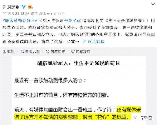 胡彦斌经纪人又发长微博说委屈,受到多重伤害,被诬蔑、误解……