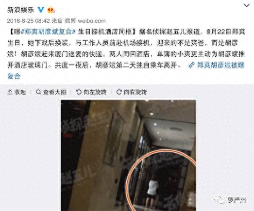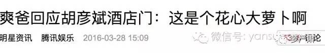 之后也有胡彦斌和神秘女吃饭的新闻,郑爽爸爸说他是花心大萝卜。