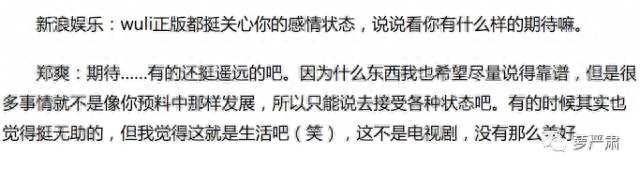 但是郑爽在微博放飞自我之前确实是掩饰恋情的。前脚在新浪的专访里说感情还挺遥远,后脚就被拍到冰爽复合什么的……