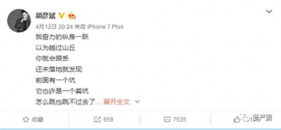 然而今年4月胡彦斌发了这条微博:“前面有一个坑,它也许是个粪坑。”