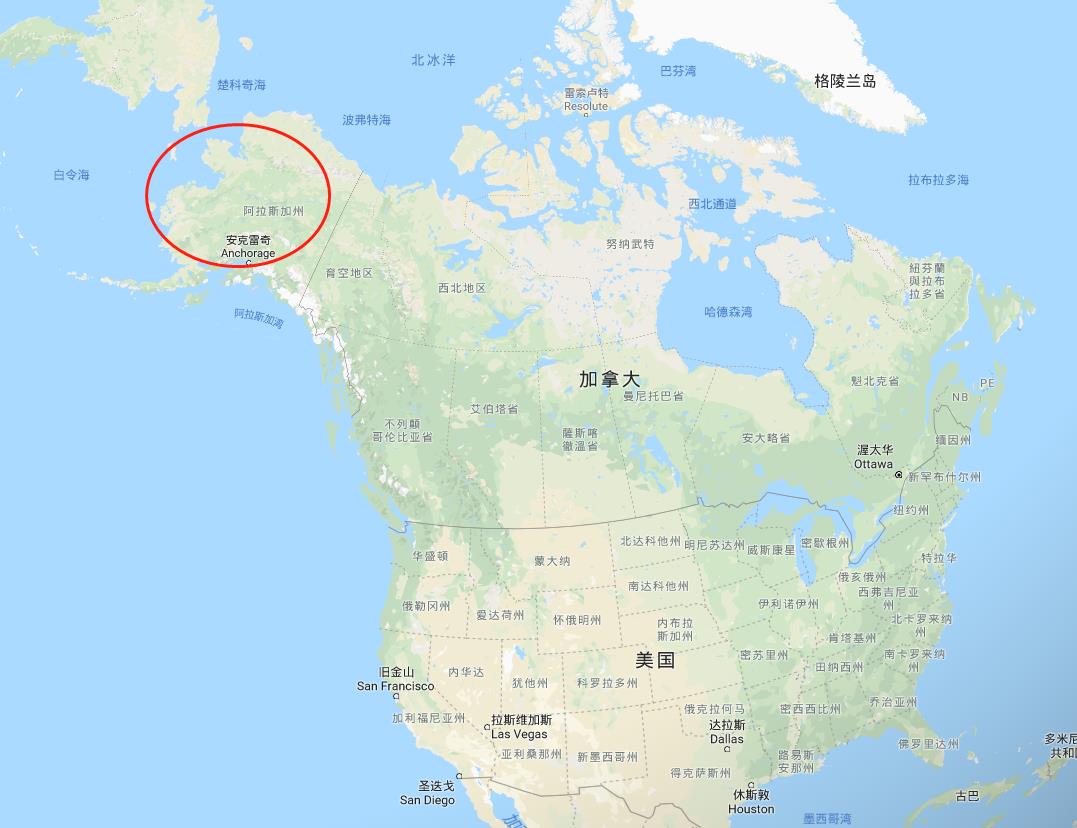 是美国位于北美洲最西北端的联邦州,以东与加拿大的英属哥伦比亚省和育空地区相邻,最西端位于阿图岛,并与俄罗斯在白令海峡以西有一海上边界。以北有楚科奇海和波弗特海,是北冰洋最南的部分。太平洋位于其南侧和西南侧。此州也是美国最大的州,也是第7大行政区划。另外,阿拉斯加州也是人口第3少和最稀疏的州份。然而阿拉斯加仍然是北美洲北纬60度线以北人口最多的领土,其人口(根据2015年美国人口普查局调查有738,432人[4])比加拿大北部及格陵兰的总和还要多四倍余。阿拉斯加州接近一半的人口都居住在安克雷奇都会区。阿拉斯加州经济分别由渔业、天然气和石油工业垄断,该州有许多此类资源。军事基地和旅游业也贡献了一定部分的阿拉斯加州经济。