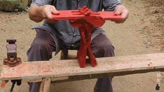 在视频中,“阿木爷爷”分享了自己使用中国传统的卯榫结构技术打造木拱桥和鲁班凳的过程。
