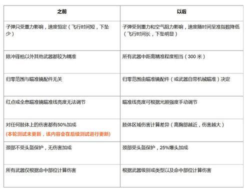 最大的变化是增加了子弹阻力效应,它会影响子弹飞行轨迹。和现实中类似,子弹射出后随着时间的推移会逐渐失去速度。而重力依然作用在子弹上,即:同等距离子弹下坠更明显。对于大多数突击步枪而言,这一变化很难在近程作战时感受到。它将在 300 米以上距离愈发明显。