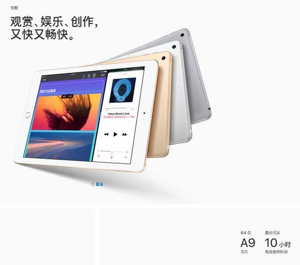 当然如果只是颜色的变化,并不能使大众满意,虽然没有传闻中的10寸新尺寸的iPad,但在性能上,相比较air2代的A8x核心,A9的核心带来了性能上的提升,新款iPad拥有9.7英寸分辨率为2048×1536的Retina显示屏,搭载了64位A9处理器。