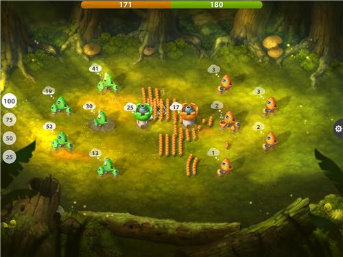 游戏的策略需要实时不断做出调整,比如说,集己方的所有蘑菇士兵去攻占一个建筑。或者是在每个建筑里面留下一点点士兵抵抗,应对可能来到的进攻,拖延一点时间?这些选择有可能会左右你的战局。