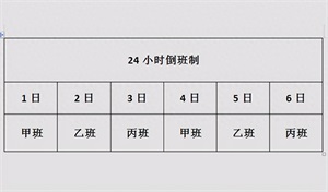 24小时倒班制一个工作流程为3天72小时,每个班组3天内上一个班次,上班时间为24小时,休息时间为48小时,往复循环。具体可以做如下安排。
