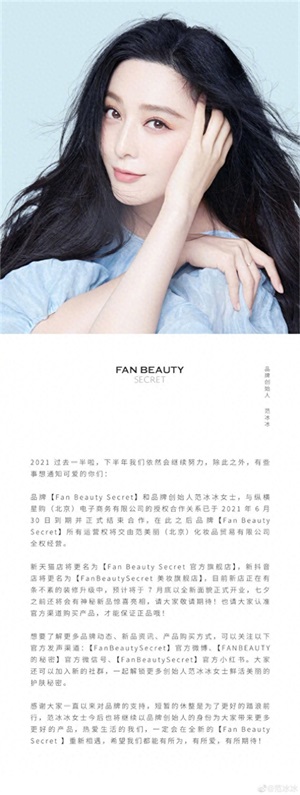 七月十二日,范冰冰宣布自己创立的护肤品牌将全新出发,改了一个新的名字。范冰冰出事以后,代言拍戏都停了,但是唯有这个自创的品牌还一直坚持着。