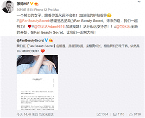 这个决定也得到了范冰冰弟弟范丞丞的支持。除了范丞丞以外,范冰冰之前的绯闻男友张帅也坚定不移地出面帮忙宣传了,张帅还发文赞扬范冰冰是一个努力的女子,表示跟着范冰冰混永远都不会变老。这样的评价也是相当的高了。最后张帅还鼓励“加油,我的护肤指导。”这句话也表明了他和范冰冰私下关系应该是很好了,所以范冰冰都愿意透露出自己的护肤秘诀。
