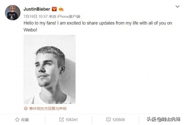 终于免翻墙!贾斯汀比伯开通微博帐号,首张照片狂吸百万人点赞
