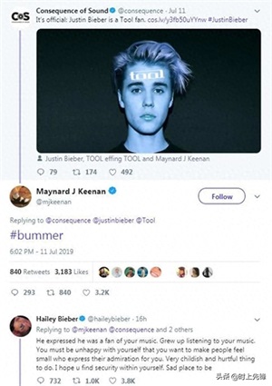 不过当红的小贾也是有在社交上“踢到铁板”的时候,昨天为大家报道他在社交上公开示爱美国老牌乐团“Tool”,并表明自己是铁粉反而遭到该乐团主唱 Maynard James Keenan 回呛,反而让海莉鲍德温(Hailey Baldwin)气炸,公开回应:“你这样做很幼稚”,让“贾鲍恋”支持者大赞女方的力挺!