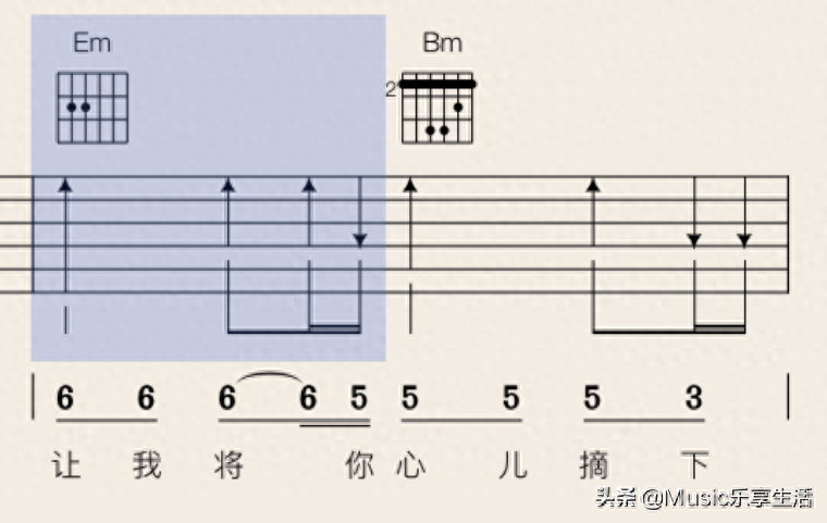 注解:1.左手按住Em和弦;