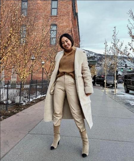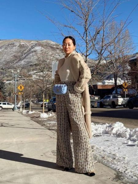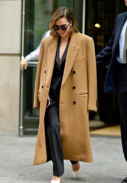 大衣和高腰阔腿裤、直筒裤、带跟短靴搭配,非常的显高显气场!