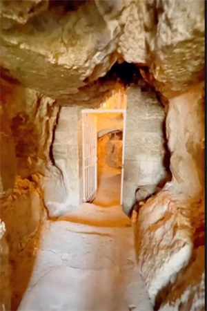 首先映入眼帘的是金字塔的入口,开了个石门,不高,刚好容下一个成年人进去。
