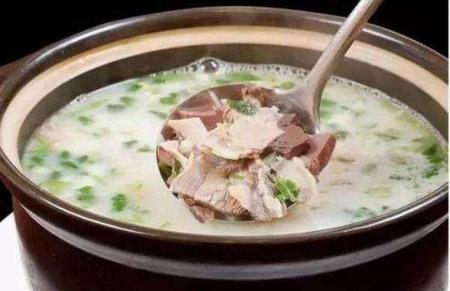 清炖羊肉——汤鲜肉美最关键的是最后一味料——将两条炸干的鲫鱼放入锅中,鱼羊鲜也正是源自这里,不一会儿汤色奶白,满屋都是鲜香的味道,清炖羊肉告成。