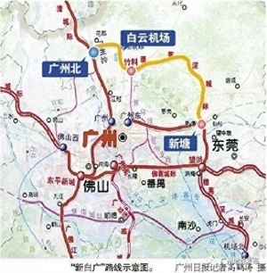 “新白广城际轨道”是增城新塘经白云机场至广州北站项目简称,是穗莞深城际客运主轴的北段、珠三角地区城际轨道交通网的重要组成部分。