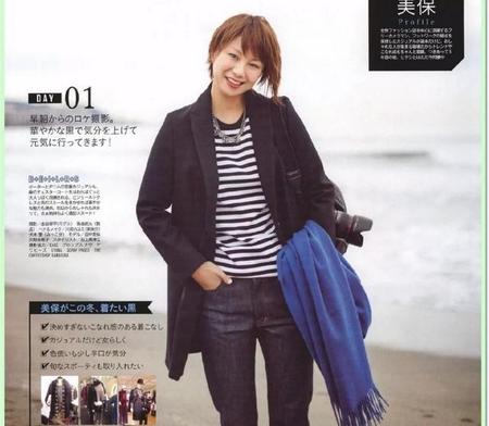 蓝白色条纹毛衣和蓝色大衣搭配也非常完美!简单大方让人过目难忘吧。特别有海军风格。蓝色的大围巾保暖又舒适,冬天给你带来温暖。