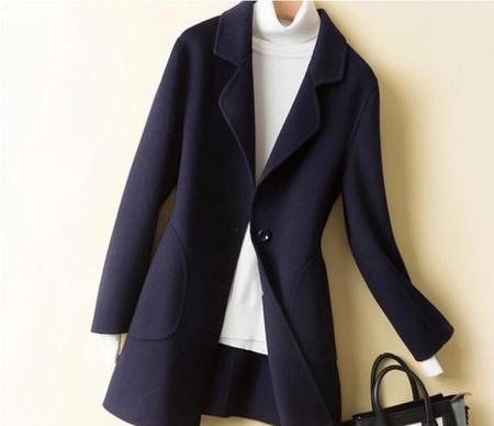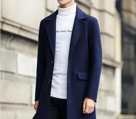 藏蓝色大衣经典好穿,修身的版型适合任何身材的女性。搭配一条红色的格子围巾不用担心撞衫。冬天的最大好处在于可以用围巾凹造型。不用费力就能穿的好看。