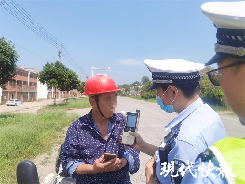 当日 12 时 30 分许,民警薛洪勇在盱眙县官滩镇狼山水泥厂门前路段执勤,在对一辆手扶拖拉机进行例行检查时发现,该车驾驶员满脸通红,身上明显有酒气散发。