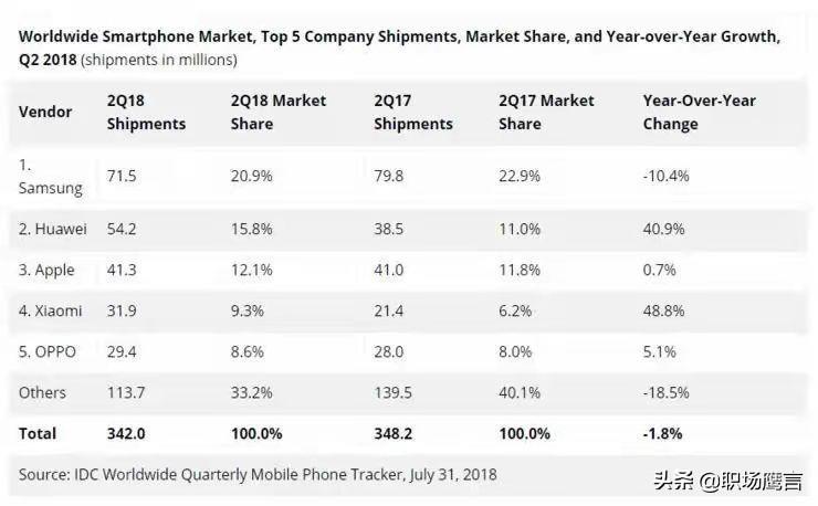 尤其是华为的智能手机,已经成为全球排名第二的智能手机厂商