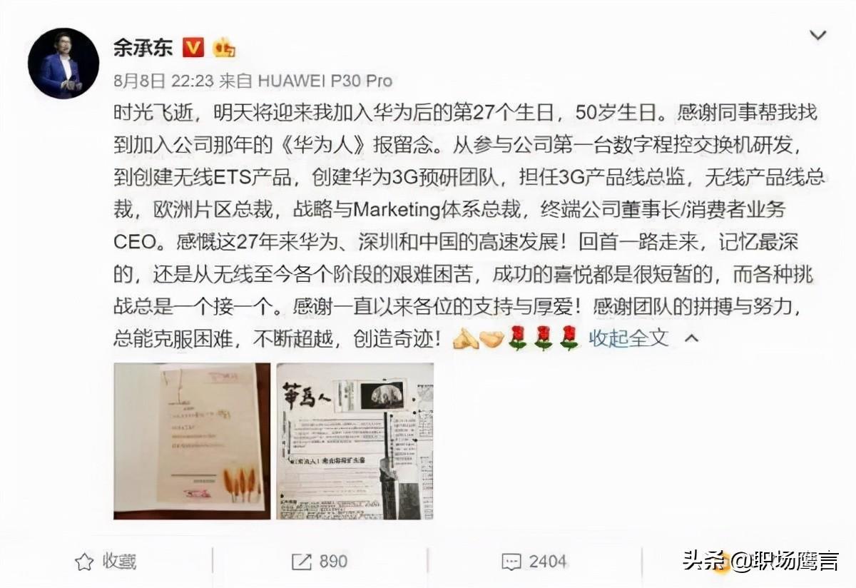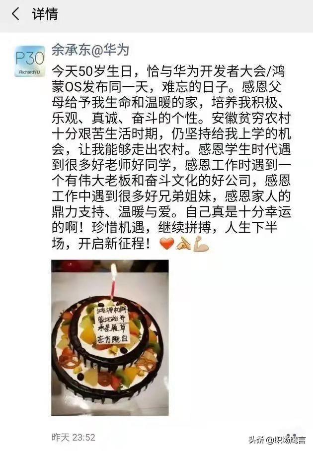 而这一天同样是余承东的生日,代表余承东正式跨入五十而知天命的年龄。