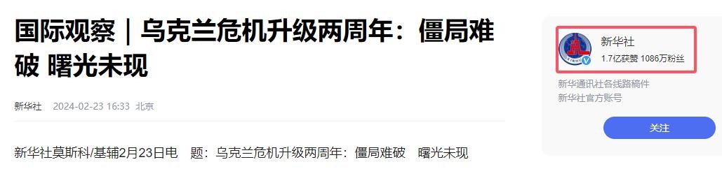 新华社:国际观察|乌克兰危机升级两周年:僵局难破 曙光未现