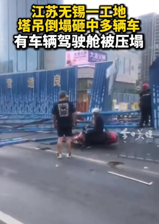 突发,无锡一工地塔吊倒塌砸中多辆车!多车严重受损,5人受伤!