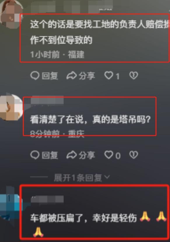将这一事件称为车祸似乎并不准确,它更像是一起严重的施工事故。众所周知,即便是最轻的塔吊也有20吨重,有的更是高达数百吨。这样的重物从高空坠落,由于巨大的惯性和冲击力,无论是什么车辆都难以避免损毁,更不用说人了!