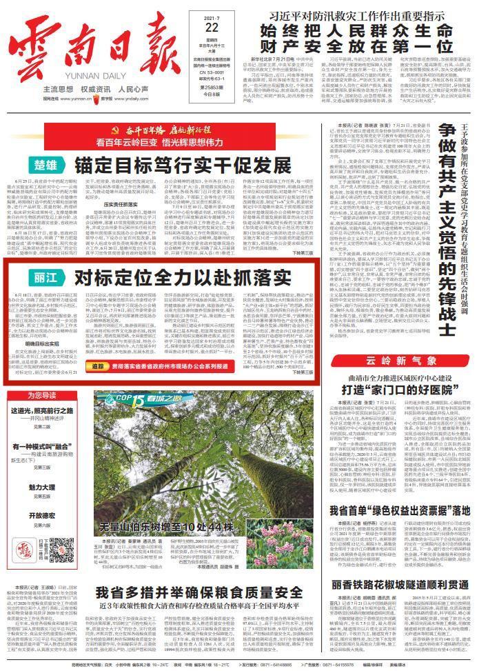 7月22日,《云南日报》头版刊发贯彻落实省委省政府州市现场办公会系列报道文章《丽江:对标定位全力以赴抓落实》。