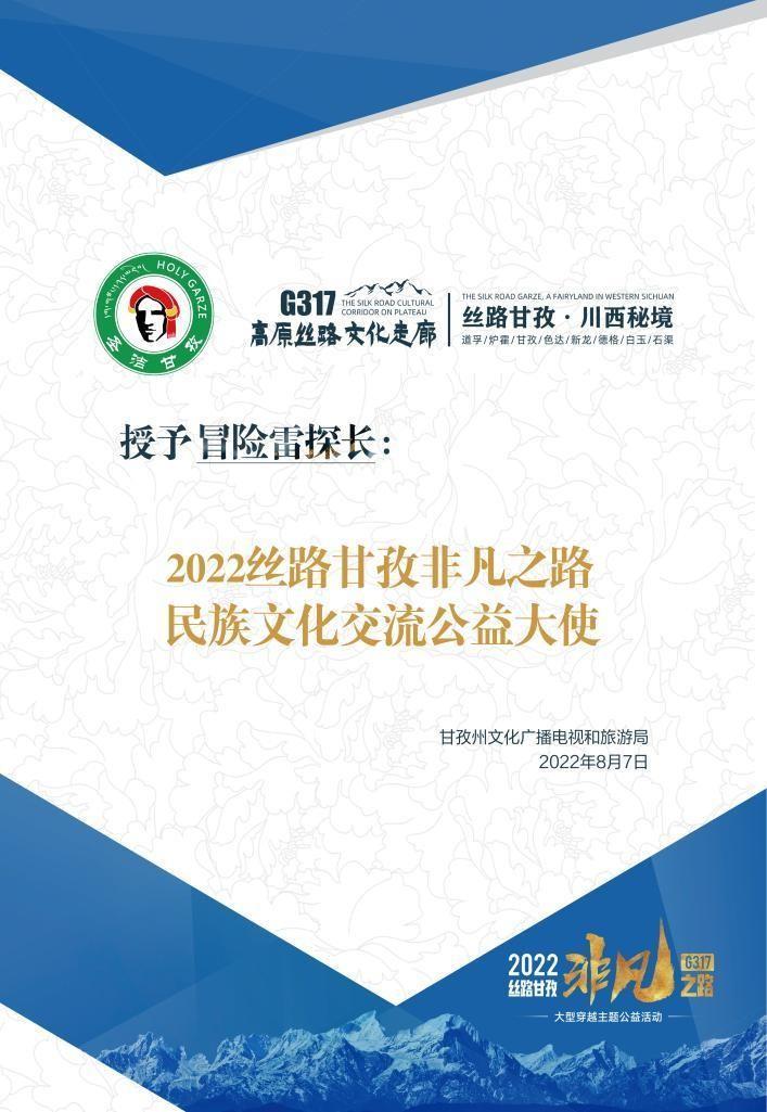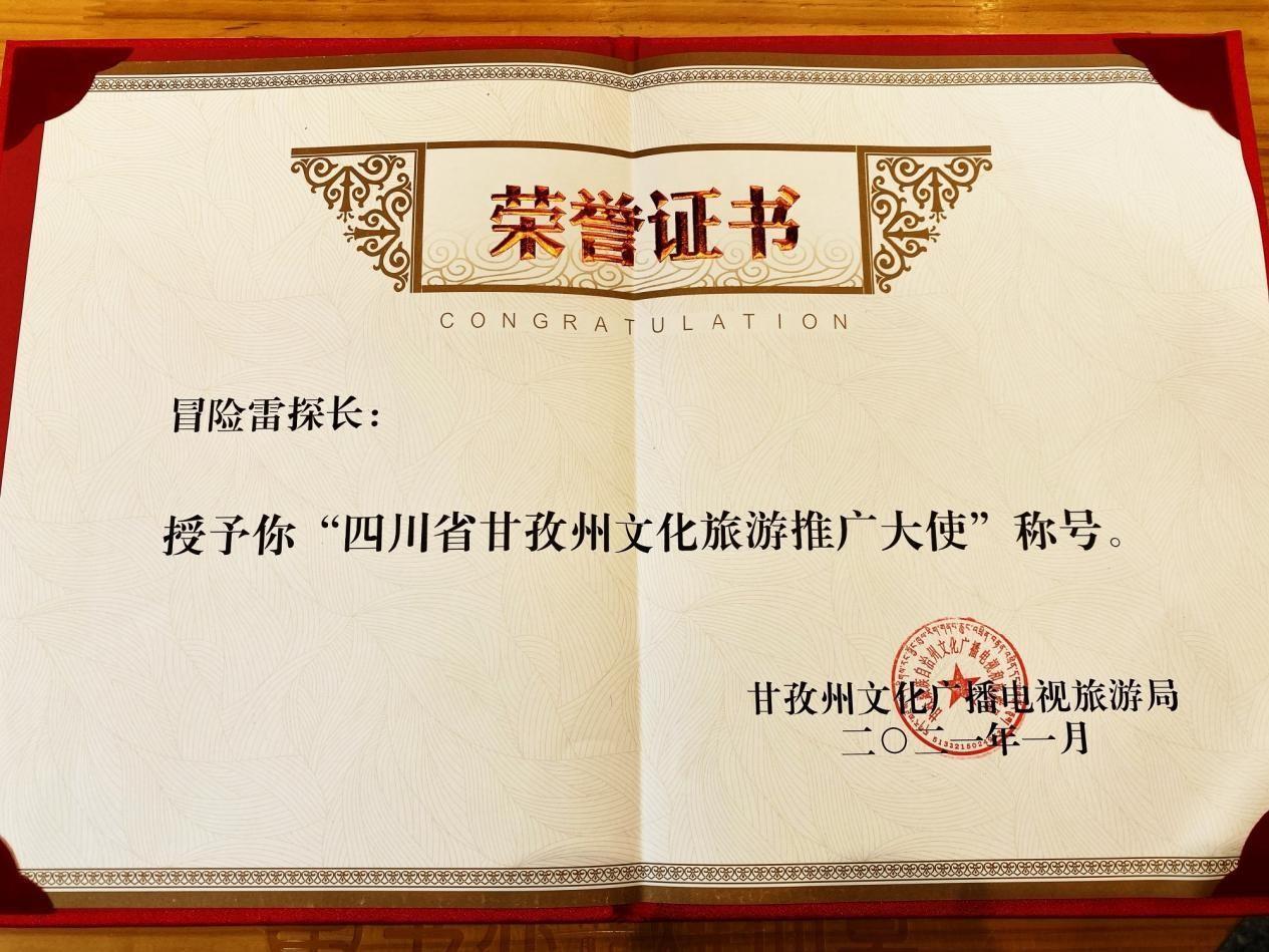 去年,甘孜文旅授予了冒险雷探长“甘孜文旅推广大使”称号,从此,雷探长带着责任和使命,踏上了宣传大美甘孜的旅程。