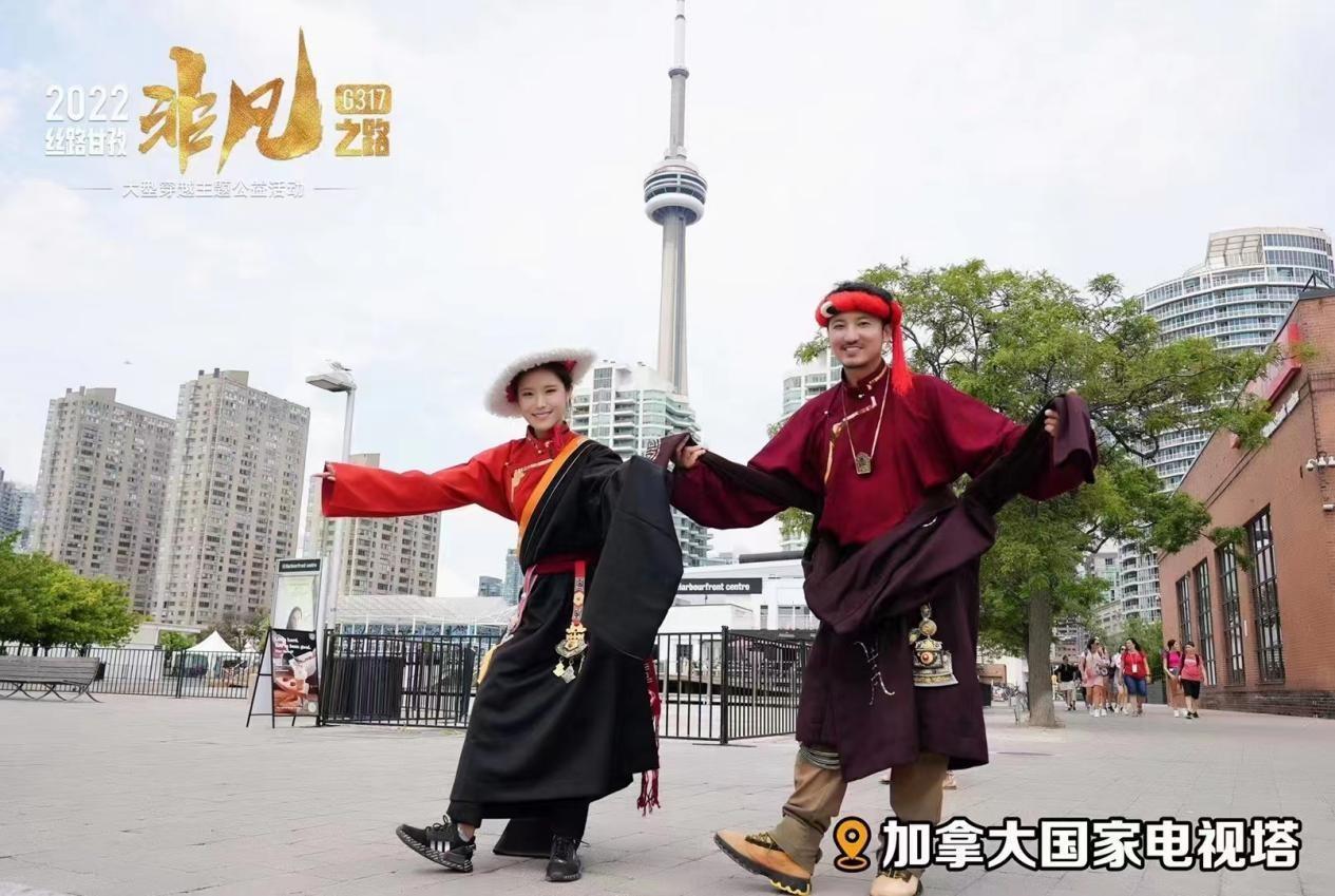 在“世界第五高塔、多伦多地标建筑”加拿大国家电视塔以及“北美五大淡水湖之一”安大略湖边与华人朋友们共舞锅庄,引起了当地国际友人们的热情回应,共同完成了一场跨越地域和时空的文化对话。