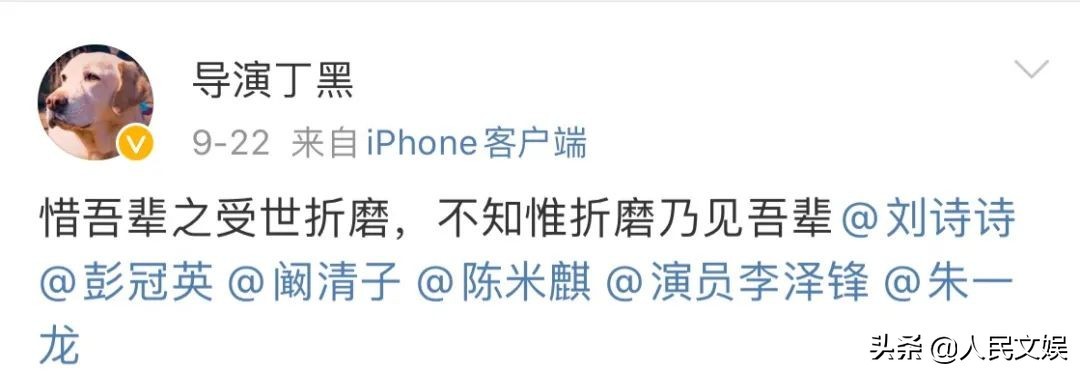 这一耳光,将“渣男刘洋”和电视剧《亲爱的自己》送上了热搜。不少人开始骂刘洋,称他是第二个“许幻山”(《三十而已》中的一个渣男),还有人跑到刘洋的饰演者彭冠英的微博下指责和谩骂。导演丁黑看不下去,在微博上发文:“惜我辈之受世折磨,不知惟折磨乃见我辈。”没承想,这17个字又被网友解读为“导演承认受挫折”。