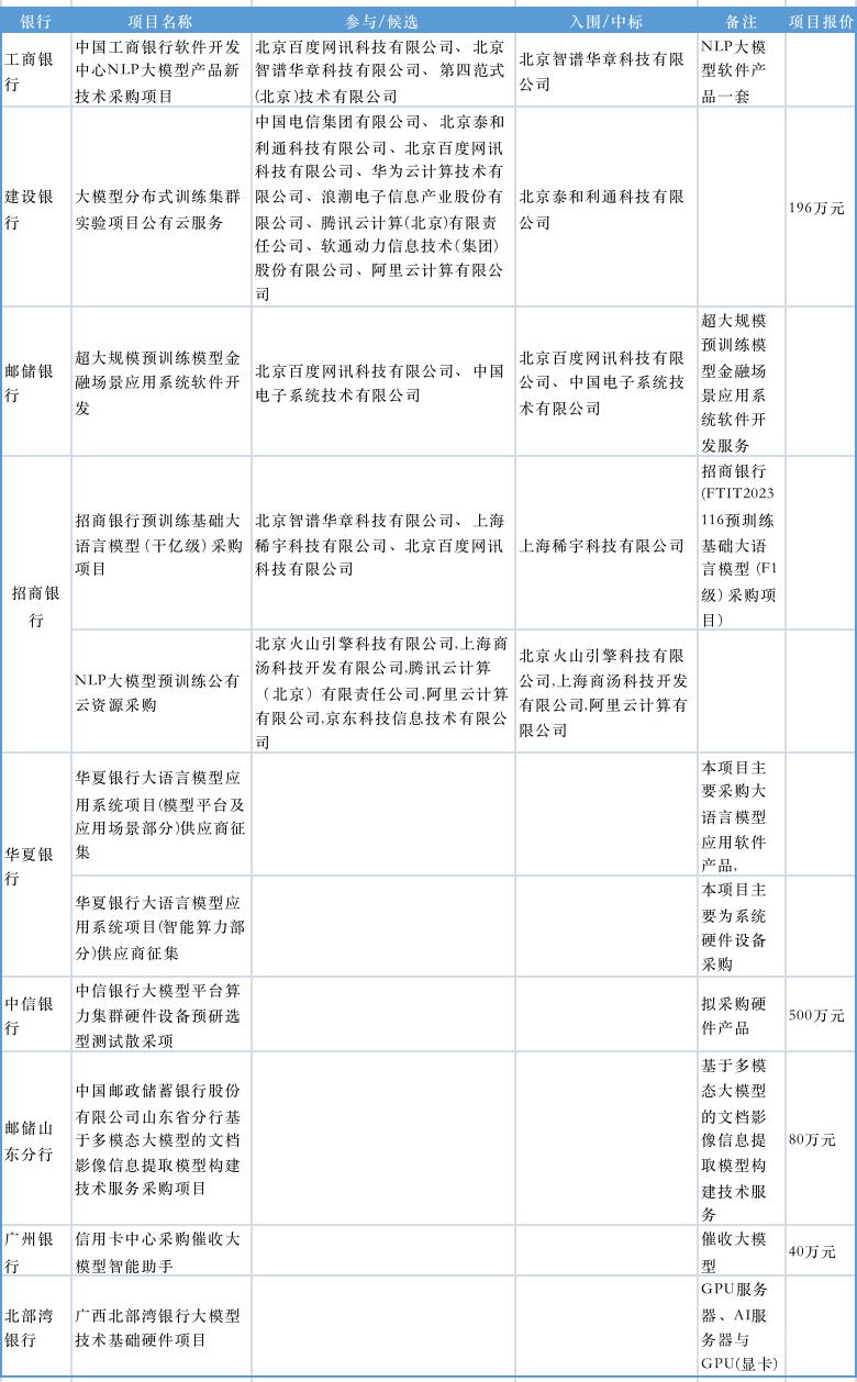 银行大模型相关招标项目,钛媒体 APP 基于公开资料整理