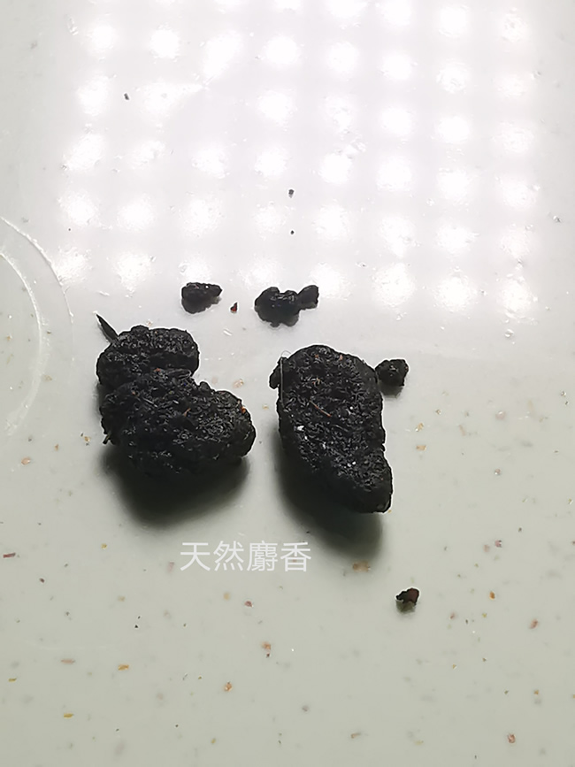 气味:香味并不刺鼻,仍然是凑上去才能闻到,只要凑上去便闻得很清楚。味道与合成的差别很大。这种是香中带臭,臭中带香,香六臭四,融为一体。