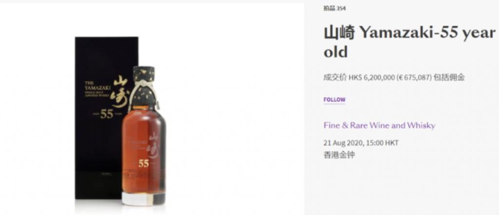 日威也因此变成具有礼品流通和金融属性的藏品。比如 2025 年,Bonhams 的香港拍卖会上,一瓶山崎 55 年以港币 620 万元(约合人民币 555 万元)成交,创单瓶日本威士忌的历史新高。