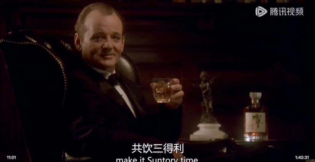 而贯穿全片的三得利的威士忌,正是这段感情的缘起和催化剂。