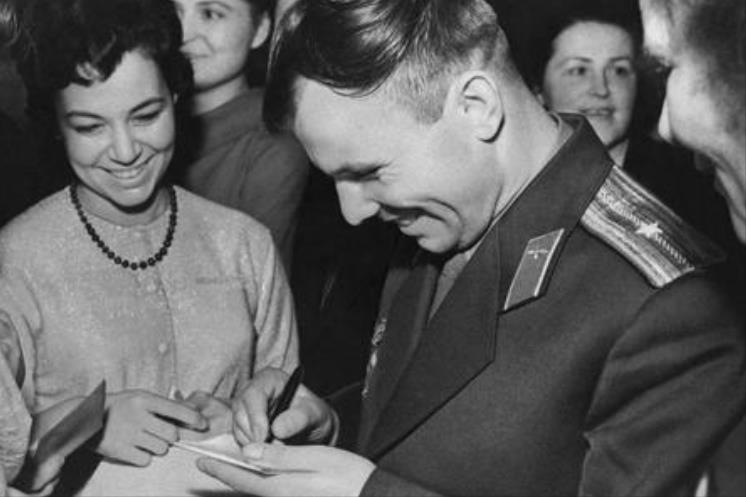 加加林同样也是苏联的“民族英雄”,甚至还是苏联盛极一时的风云人物,帅气的面孔、高挑的鼻梁和迷人的微笑成为加加林的形容词。尤其是他的微笑,简直没有任何一个女孩可以拒绝,凡是他走过的地方,艳闻也就闻风而来。