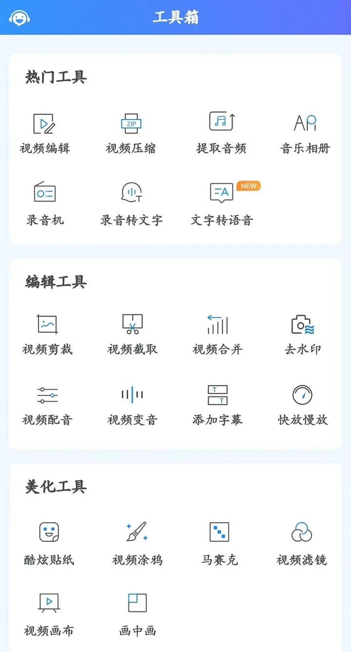 除了视频录制以外,这款工具还具备多个视频编辑的功能,包括音频提取文字转语音、录音转文字、视频配音、合并视频、视频添加马赛克等。