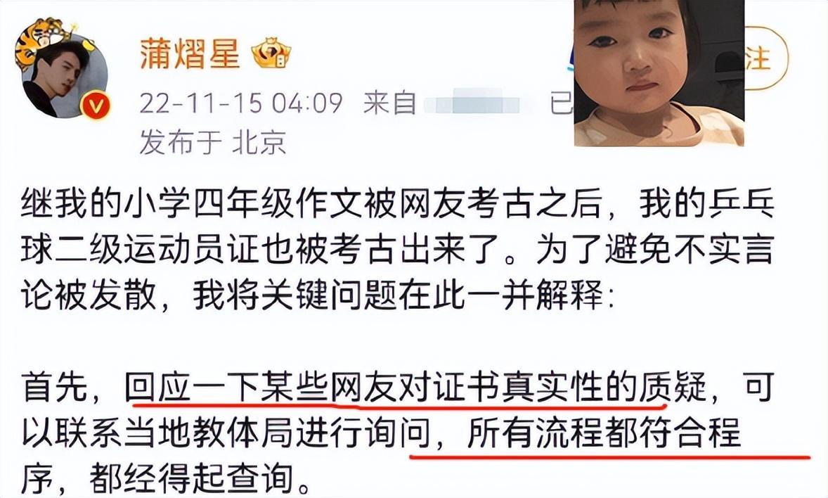 不过这份质疑,蒲熠星也是出面回应了,首先他没有否定二级运动员证书的事,承认了自己中学的确练习乒乓球,但是取得证书的流程符合程序,是自己练习和比赛考下来的,经得起查。