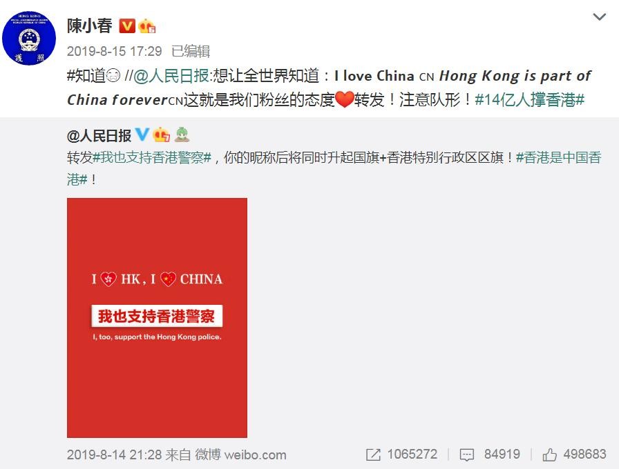 3月19日,香港艺人陈小春在微博转发了人民日报官方微博制作的“两个辛丑年的对比”图片,并配了以上文字,被网友赞“太刚了春哥”“好帅”。
