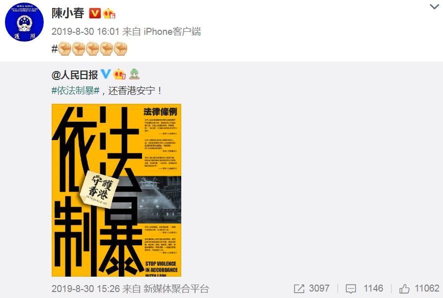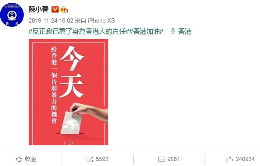22日,香港“点新闻”报道了陈小春在微博上的发文。